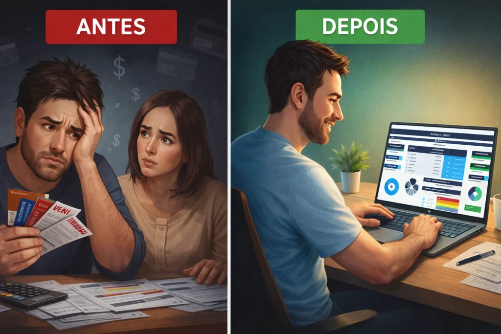 Você para de gastar no escuro e começa a decidir com calma, sabendo onde está pisando.